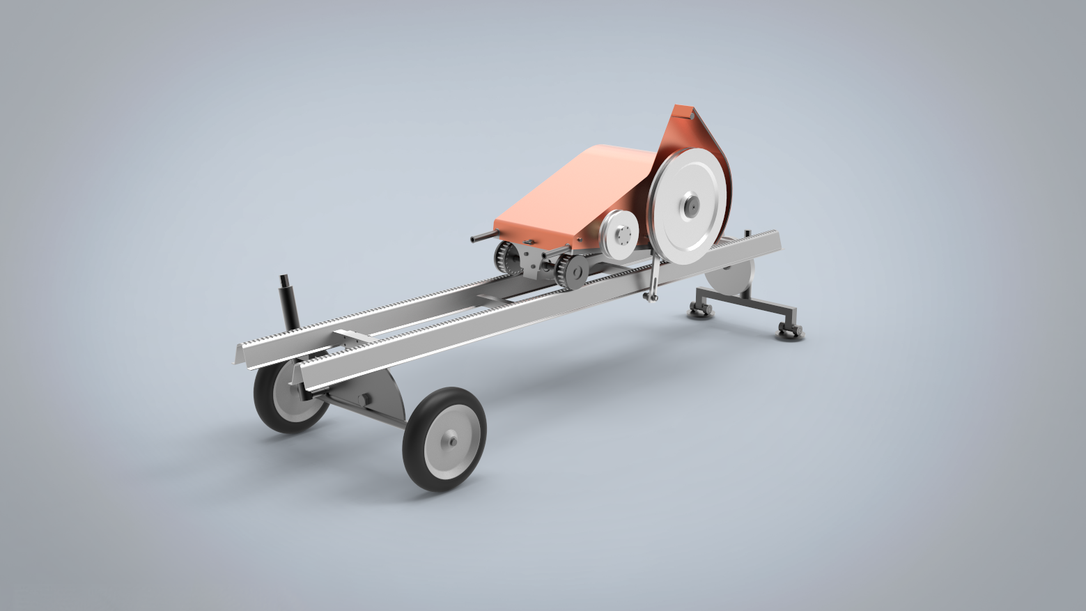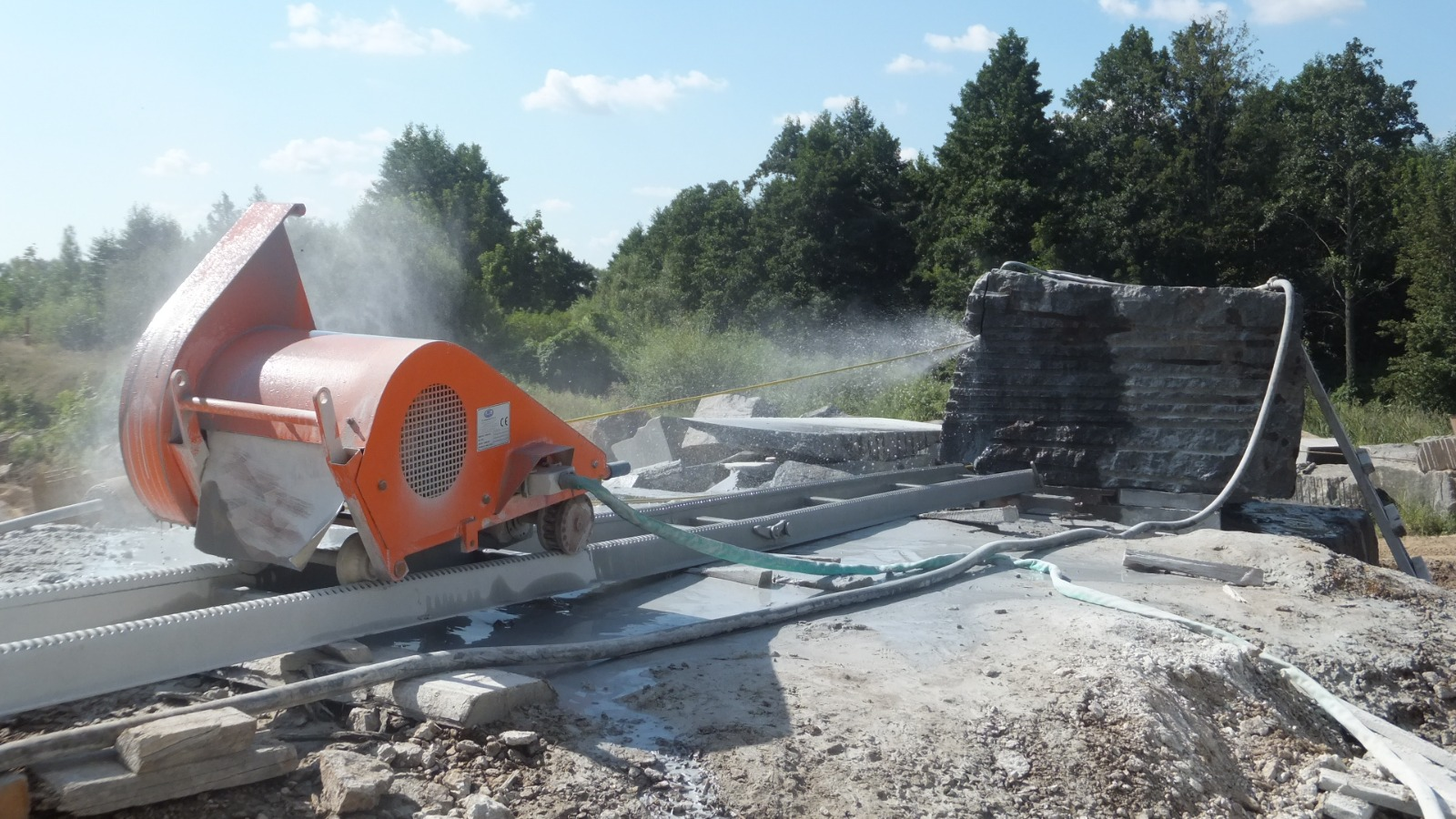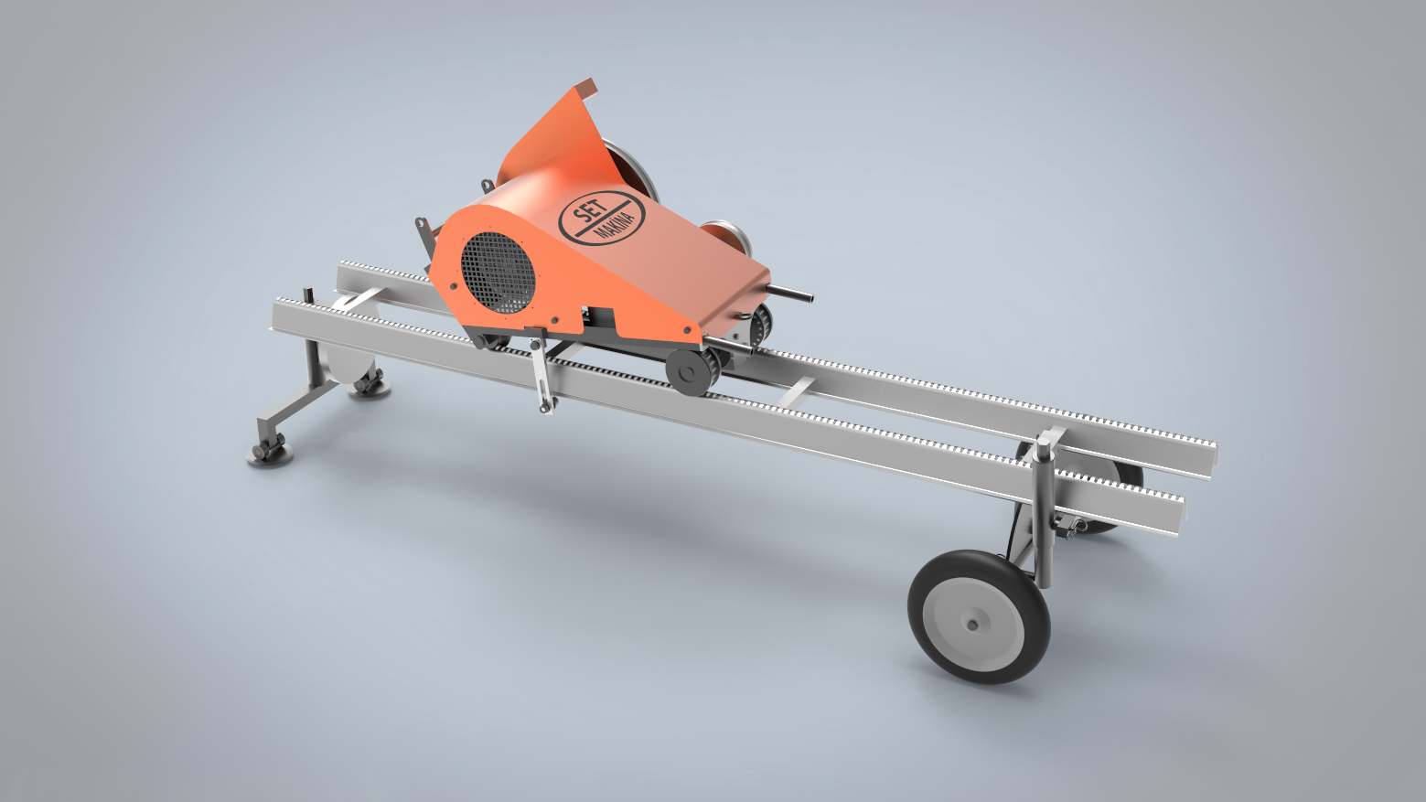 Makine, 3 metre uzunluğunda, tekerlekli ve yükseltilmiş ray sistemi üzerinde çalışır. Bu yapı, sahada hassas konumlandırma ve kolay taşıma imkânı sunar. Hafif yapısı ve taşınabilir konfigürasyonu sayesinde TIGER MICROFILL, dar alanlı üretim sahalarında manevra kabiliyeti ve kesim hassasiyeti gerektiren uygulamalar için ideal bir çözümdür.