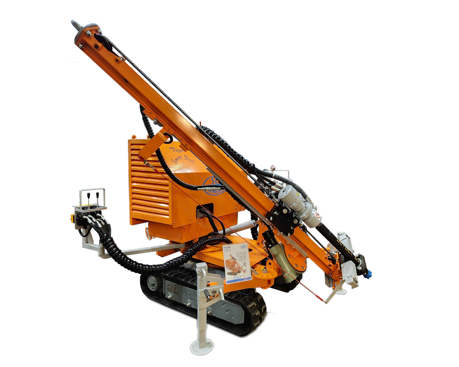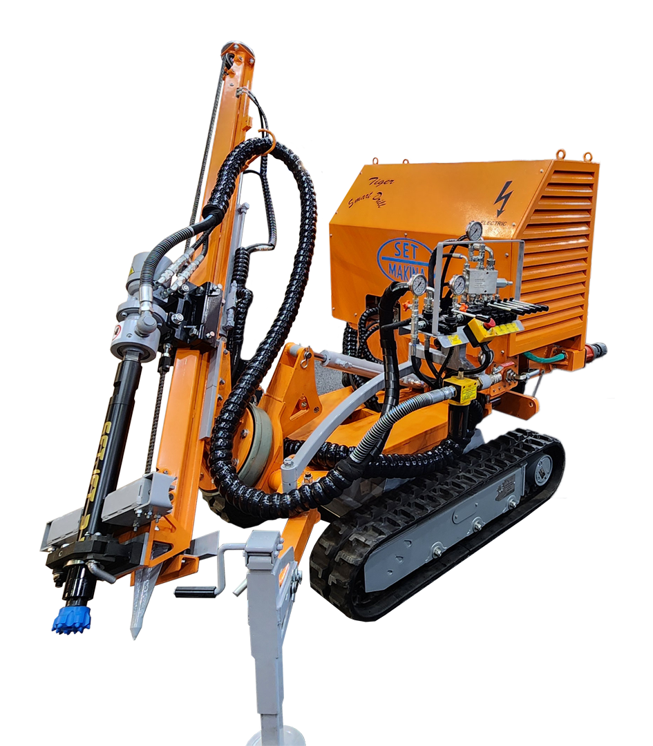 SMART DRILL ELECTRIC, 20 HP gücünde elektrik motoruyla çalışan, kompakt yapıda hidrolik bir delme ünitesidir. Yatay, dikey ve açılı delme pozisyonlarında hassas delme işlemleri için tasarlanmıştır. Hidrolik kanat sistemine sahip olan makine, kauçuk paletli, kendinden tahrikli bir şasi üzerine monte edilmiştir; bu da zorlu zeminlerde yüksek hareket kabiliyeti ve denge sağlar. Standart olarak kolon tipi bir gövdeyle sunulan sistem, talep edilmesi durumunda çelik paletli olarak da üretilebilir. Delici kafa, herhangi bir tadilat gerektirmeden farklı delme yöntemlerine kolayca uyarlanabilir; karot kafası, DTH tabanca veya pnömatik delici tabanca ile değiştirilebilir. Bu çok yönlü tasarım, geniş bir uygulama yelpazesinde verimli performans sağlar.