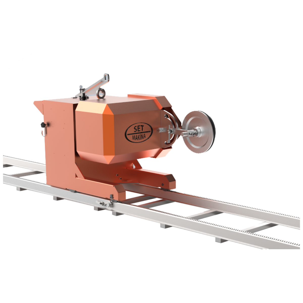 1.280 mm ray genişliği ve ağır döküm gövde, dağ kesme sırasında stabilite sağlar. 1 HP servo motor hızlı pozisyonlama sunar. ±250 mm yan hareketler 0,75 HP motorla gerçekleştirilir. 360° kafa dönüşü ise 1,5 HP motorla sağlanır. Tüm fonksiyonlar PLC destekli uzaktan panel üzerinden kontrol edilir. Makine, 3’er metrelik iki ray üzerinde çalışır.